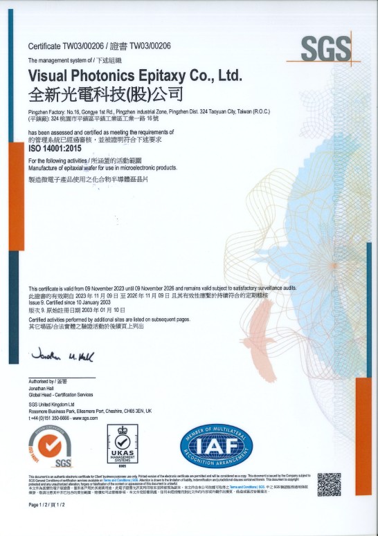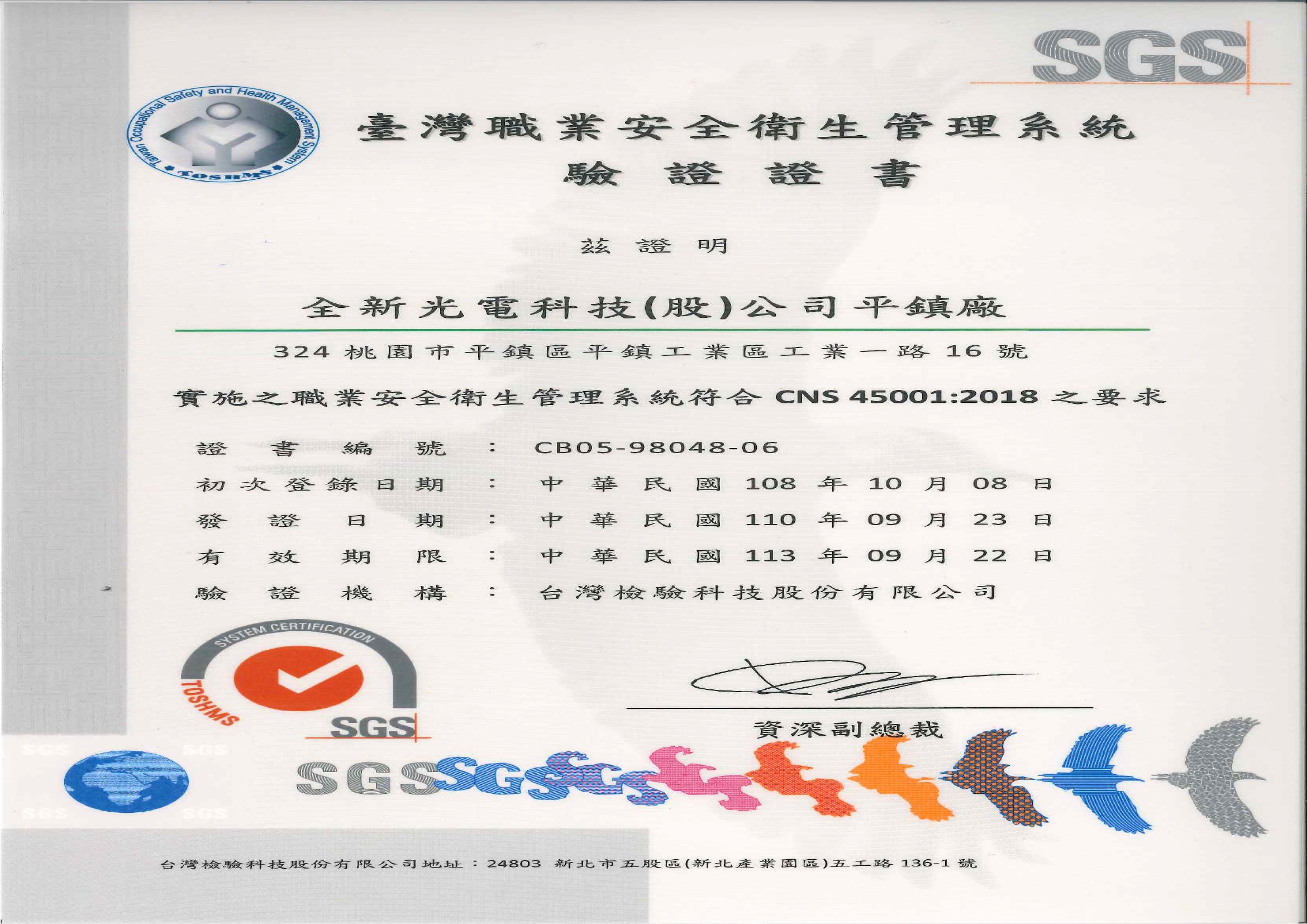 ISO 14001證書 ISO 14001證書  ISO 45001證書 ISO 45001證書(平鎮二廠)