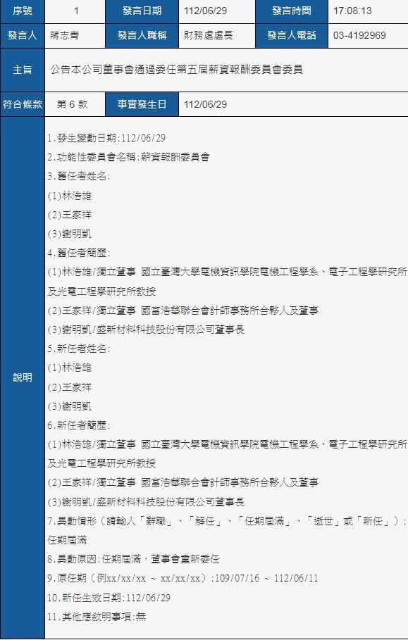 公告本公司薪資報酬委員會委員任期屆滿 |